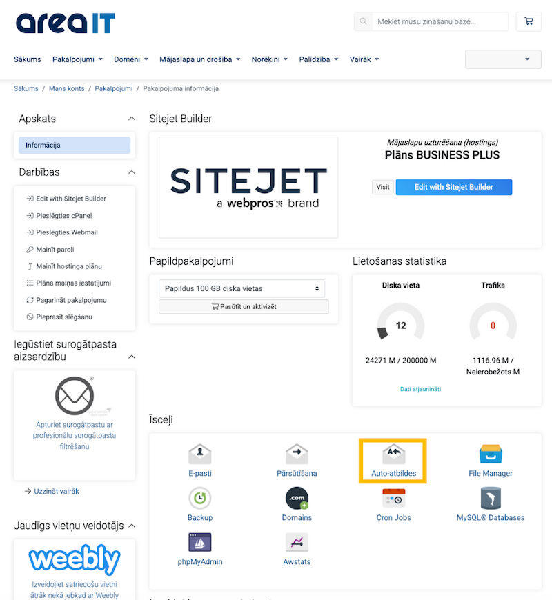 A) izmantojiet AreaIT "Klientu portālu", kur zem īsceļiem varēsiet atrast Auto-Atbildes