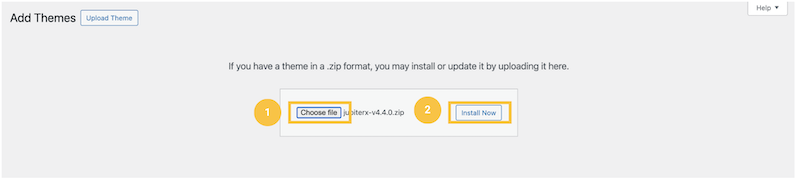 - Izvēlieties savas Tēmas atbilstošo ZIP failu, kuru vēlaties augšupielādēt, lai uzstādītu Tēmu.
