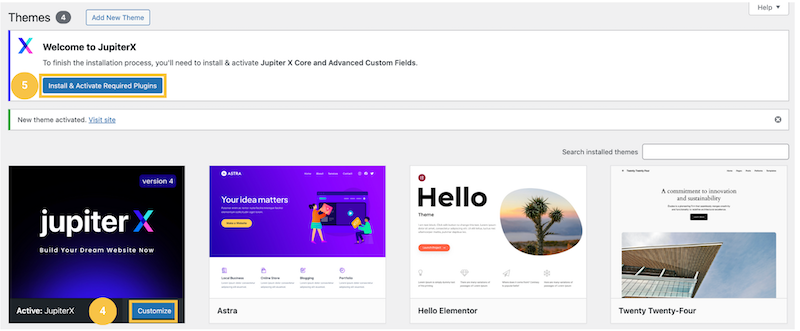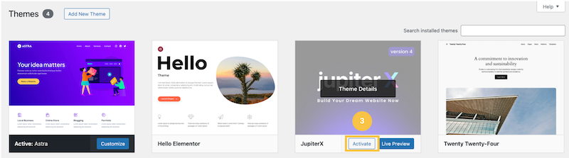 3. Pēc veiksmīgas Tēmas instalēšanas, dodieties uz savu Tēmu sarakstu un izvēlieties to "Aktivizēt" jeb "Activate".