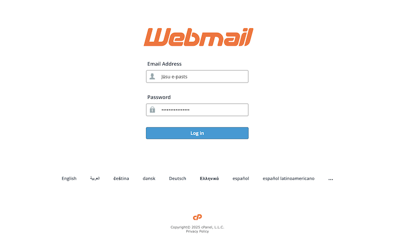 - Pielēdzieties savam e-pastam www.Jūsudomēns.lv/webmail.